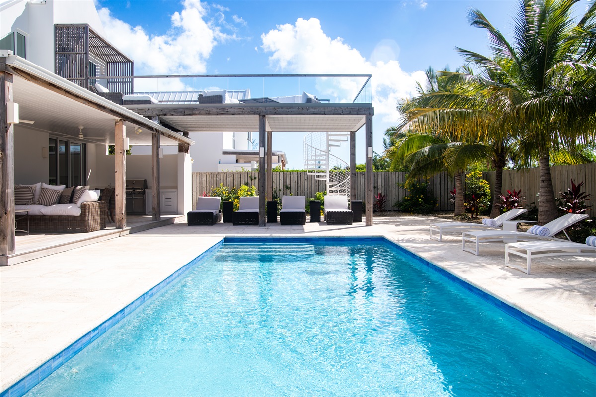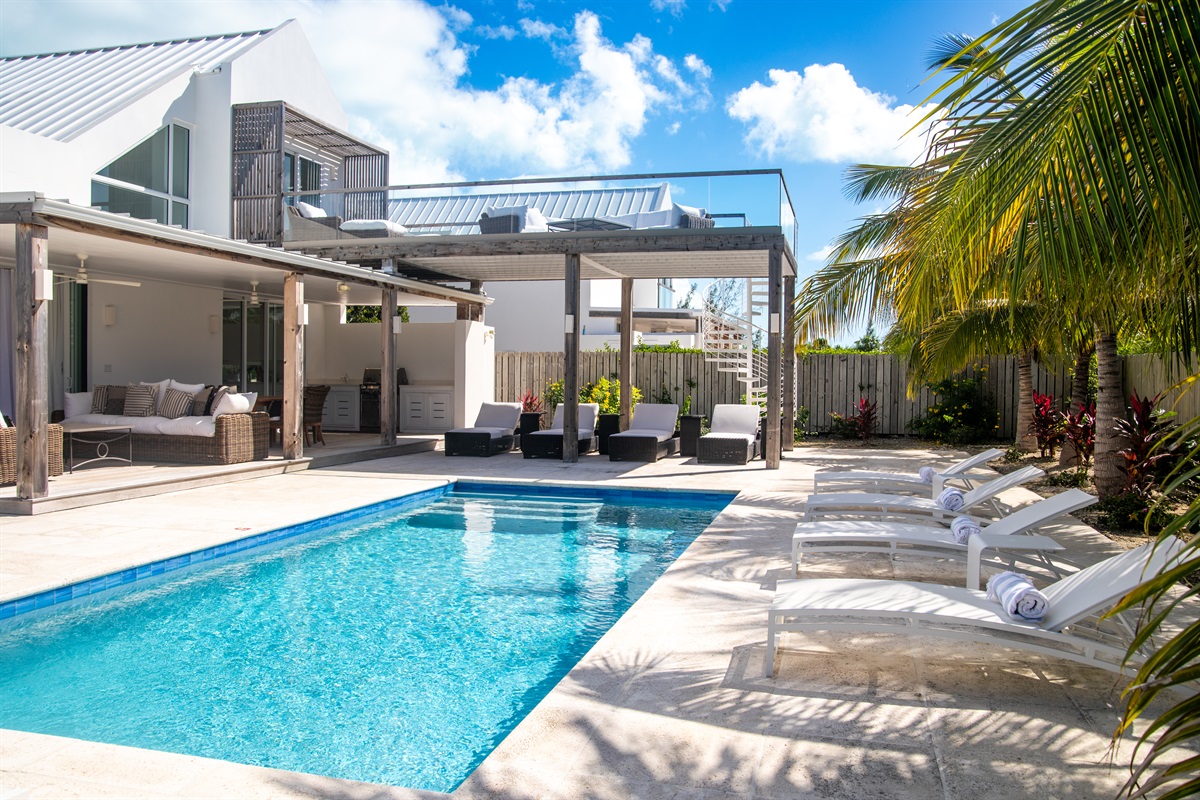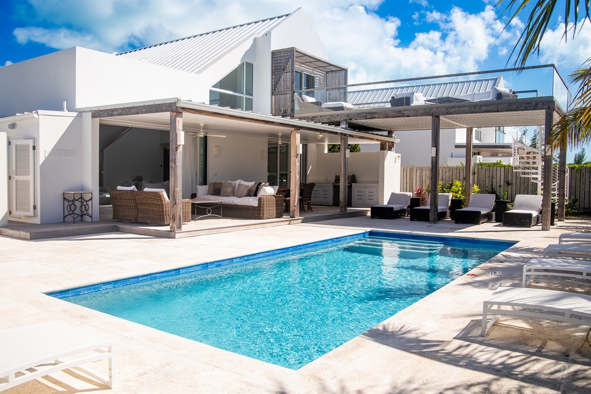 i C2 is located in the residential neighborhood of Leeward on Providenciales, the most developed island in Turks & Caicos. On the expansive patio, you can immerse yourself in the sensory delight of the gentle trade winds and sound of swaying palms. From its second level, where a gorgeous 14 foot by 35 foot furnished deck overlooks the ocean, you have the best seat in the house for watching Providenciales’ world-famous sunsets.