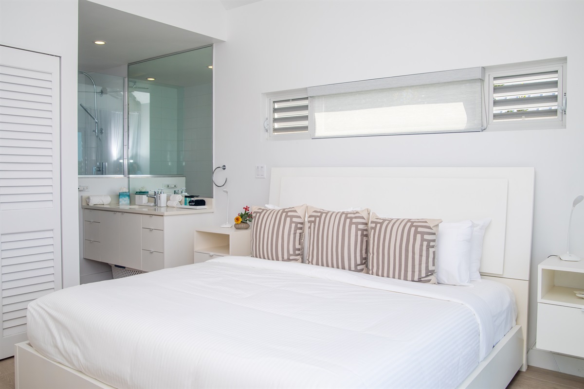 Each bedroom comes with luxury linens, towels, robes, and bath products, a hotel-style safe, and a Smart TV. This private villa is fully air-conditioned and comes with high speed Wi- Fi throughout.